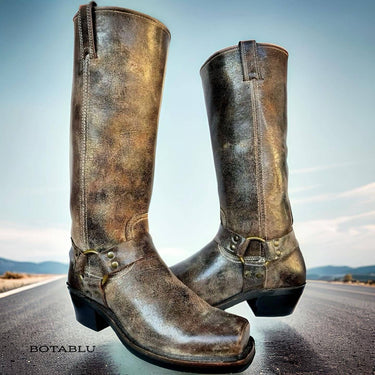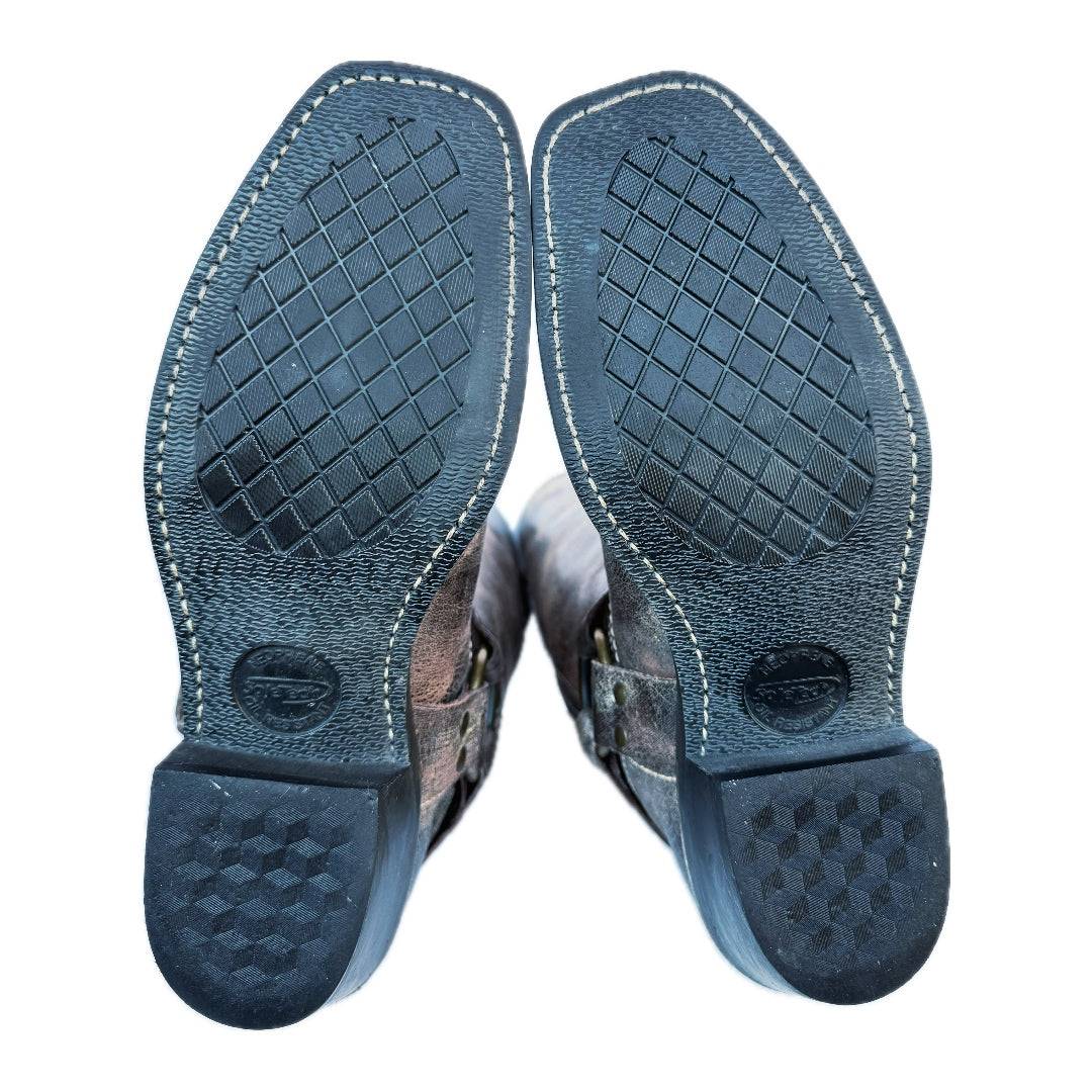 FRYE Vintage Harness Rare 15R Extra-Tall Knee High Boots in a Gorgeous Crackle Distressed Chocolate Brown Leather. Amazing, Trending Biker Boots!