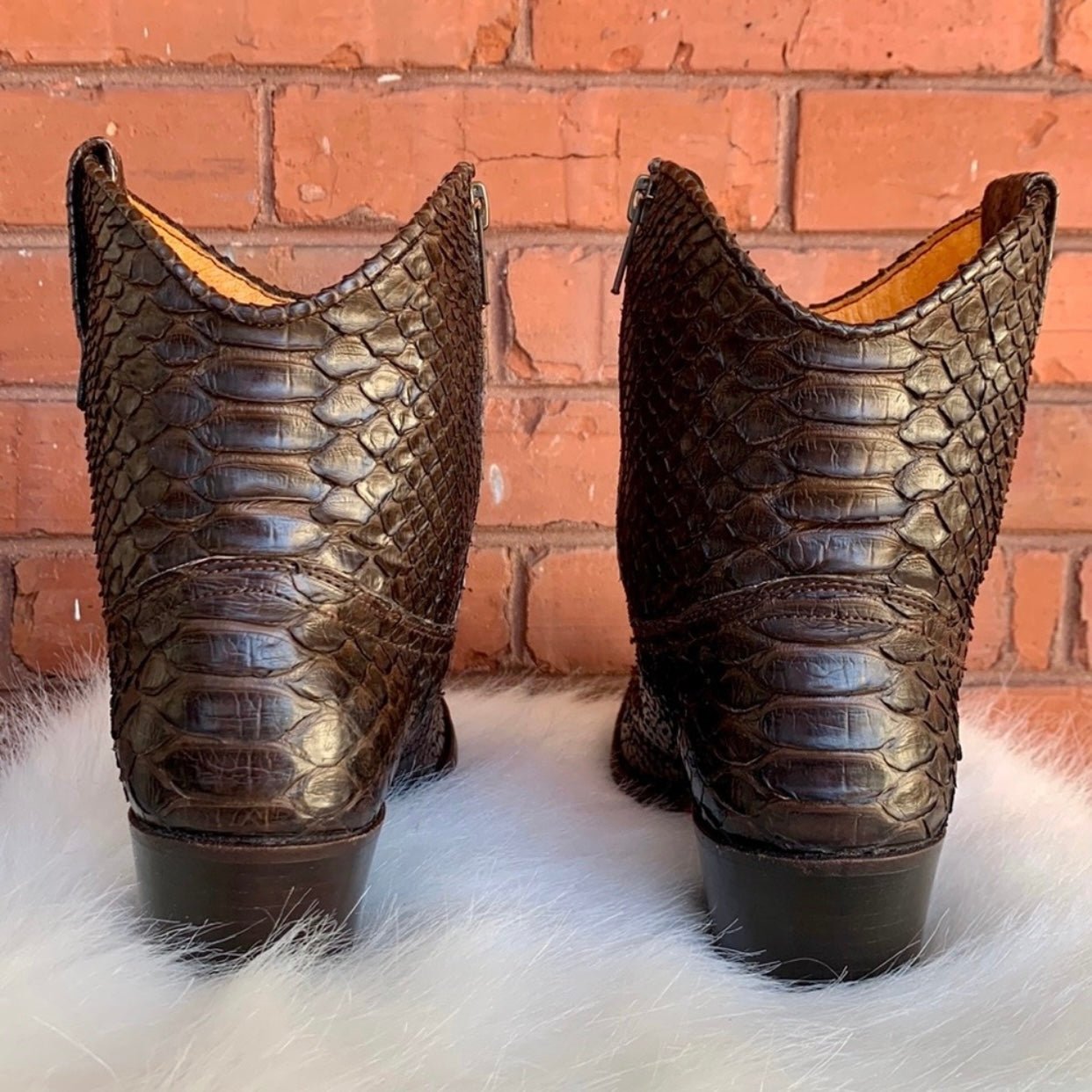 Beautiful, Rare FRYE Deborah Snakeskin Python Exotic Skin Zippered Western Ankle Bootie Boots