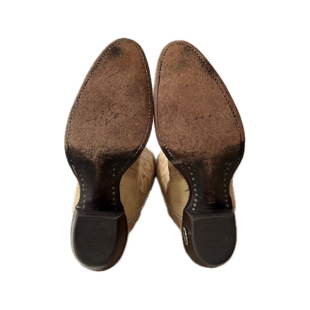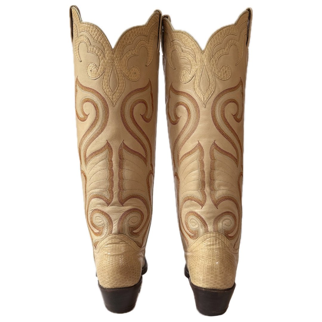 LARRY MAHAN Vintage Exotic Ivory Beige Knee High Cowboy Boots