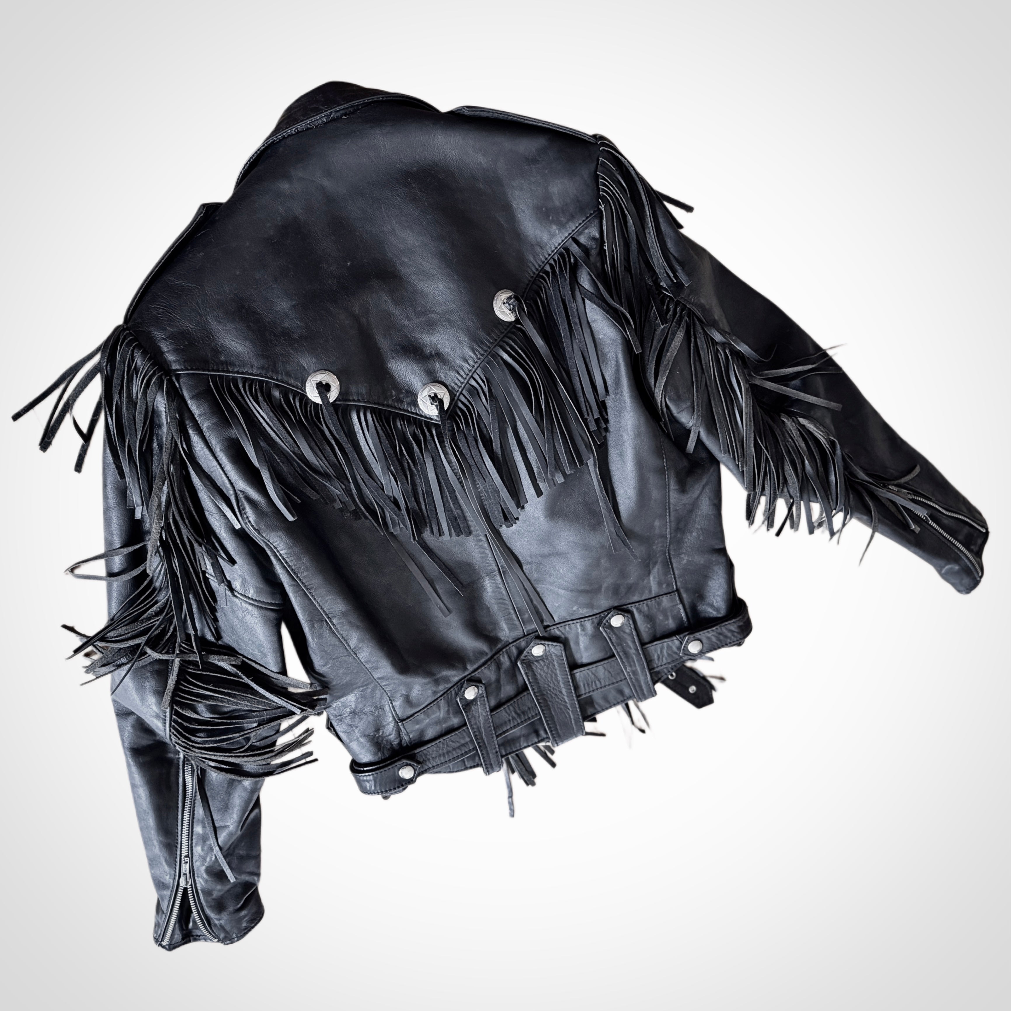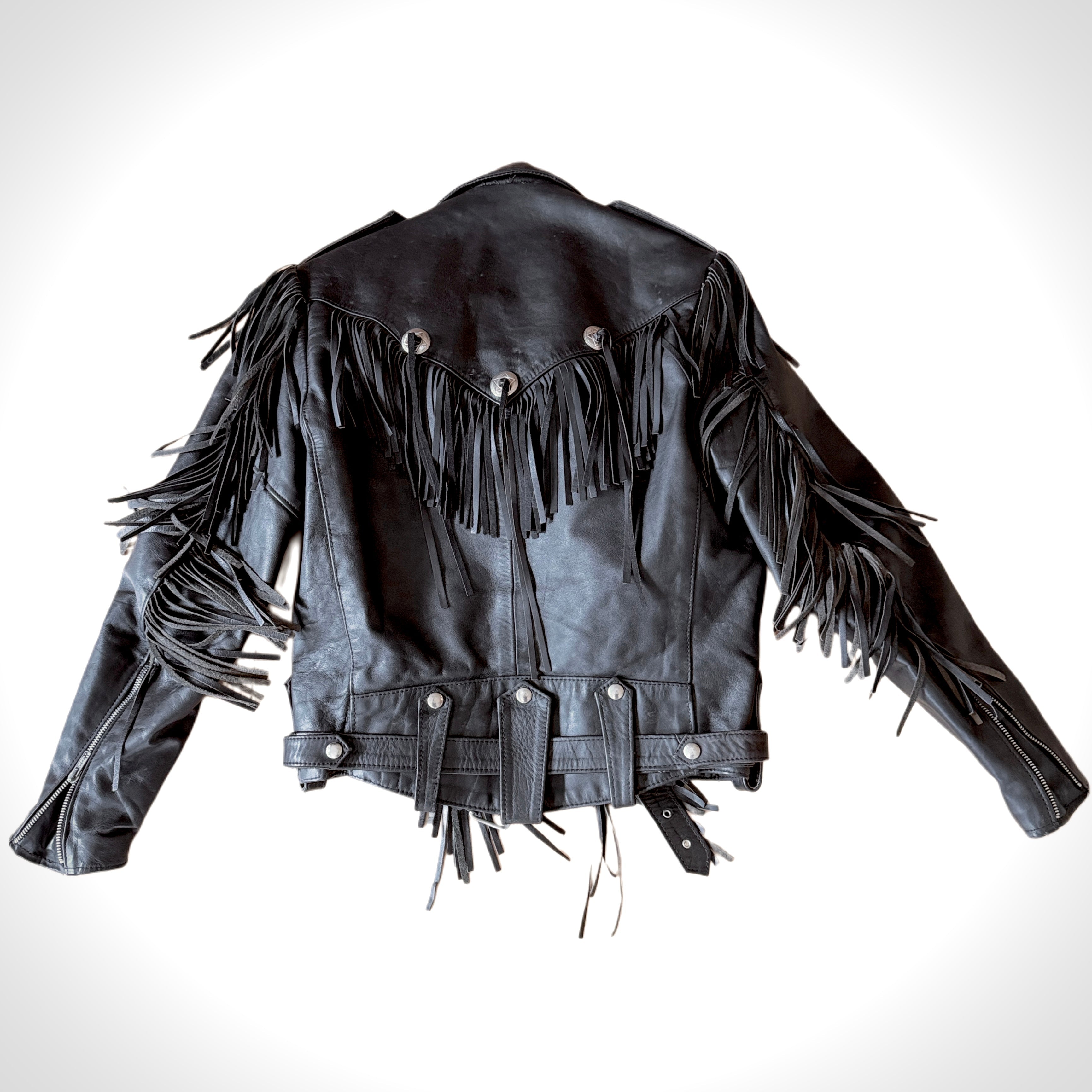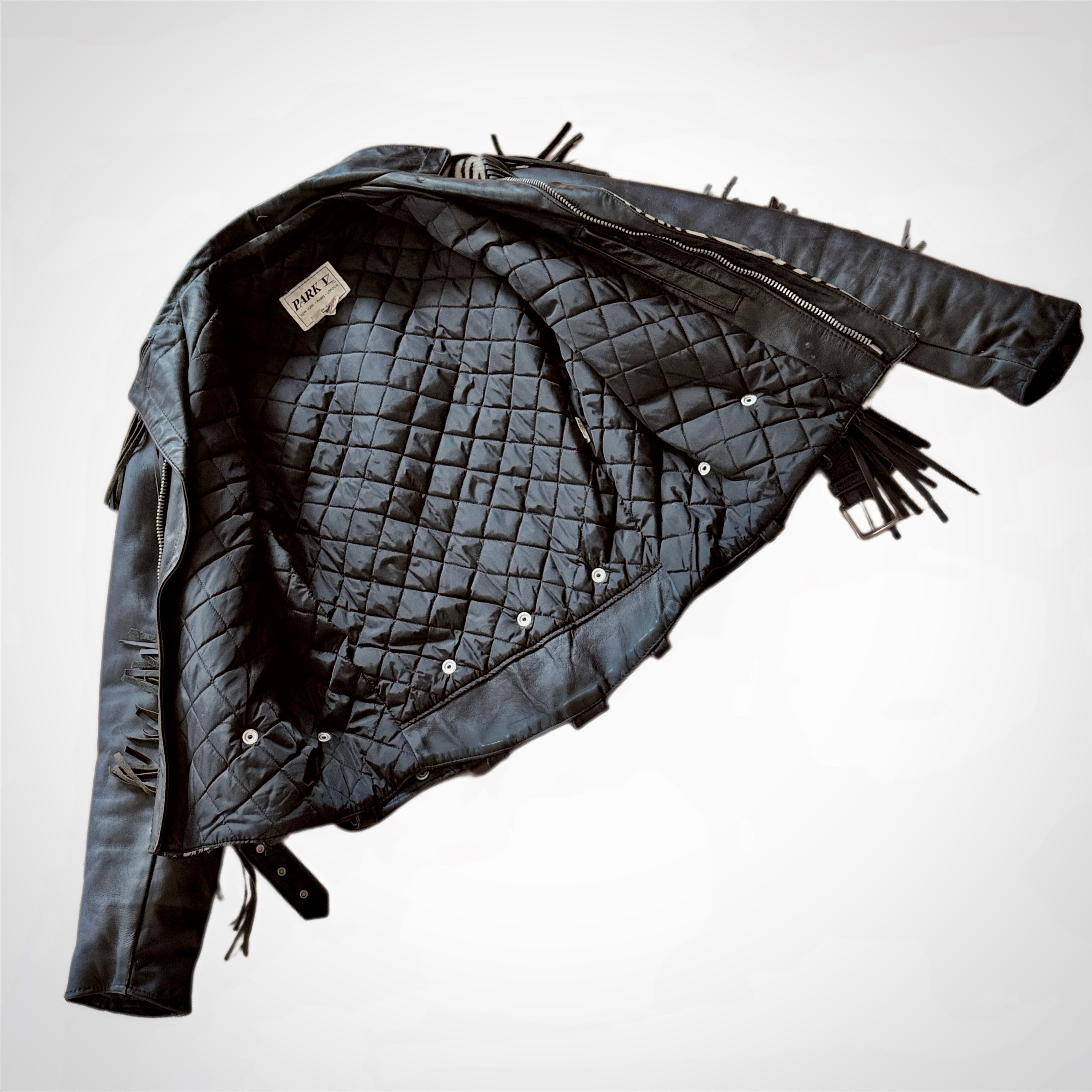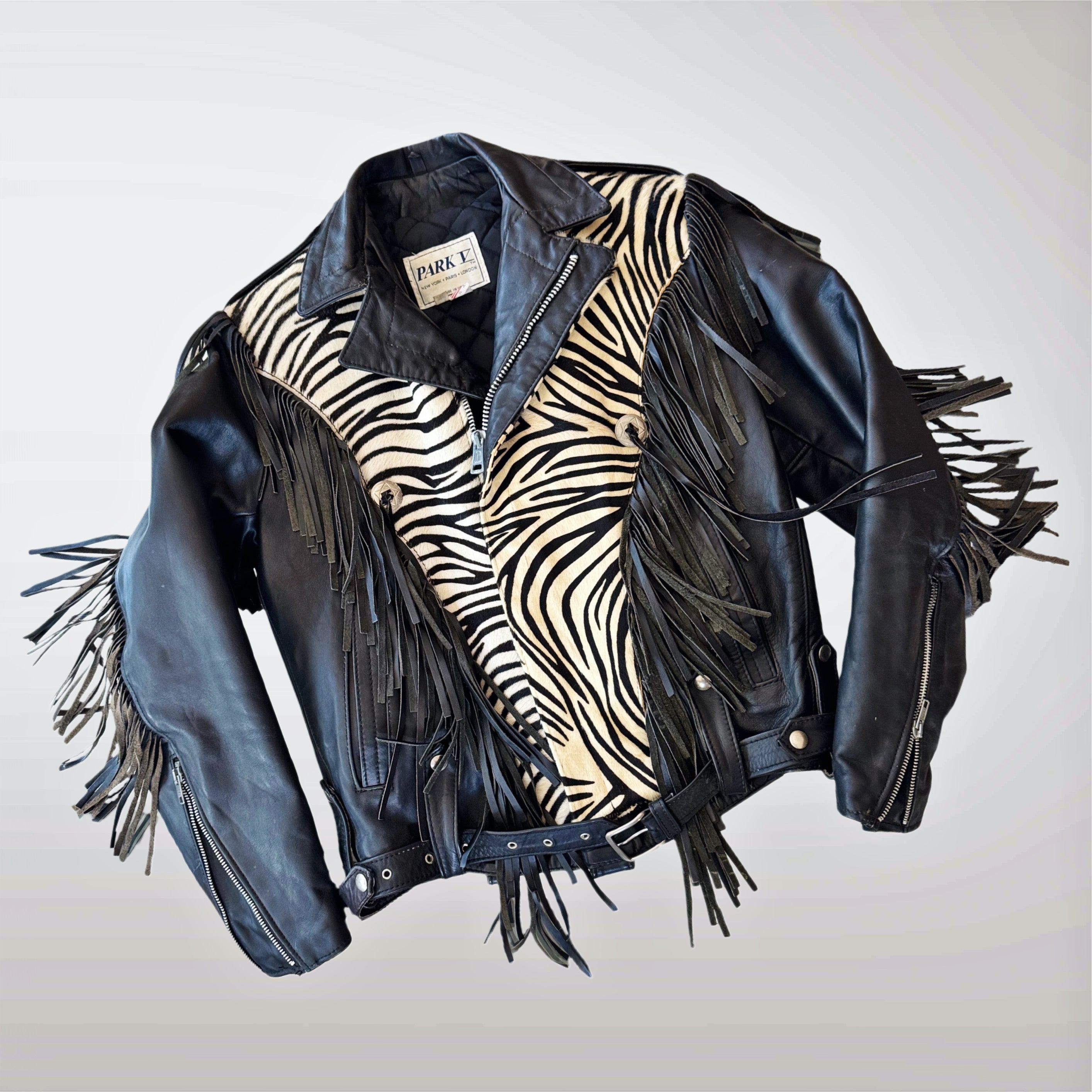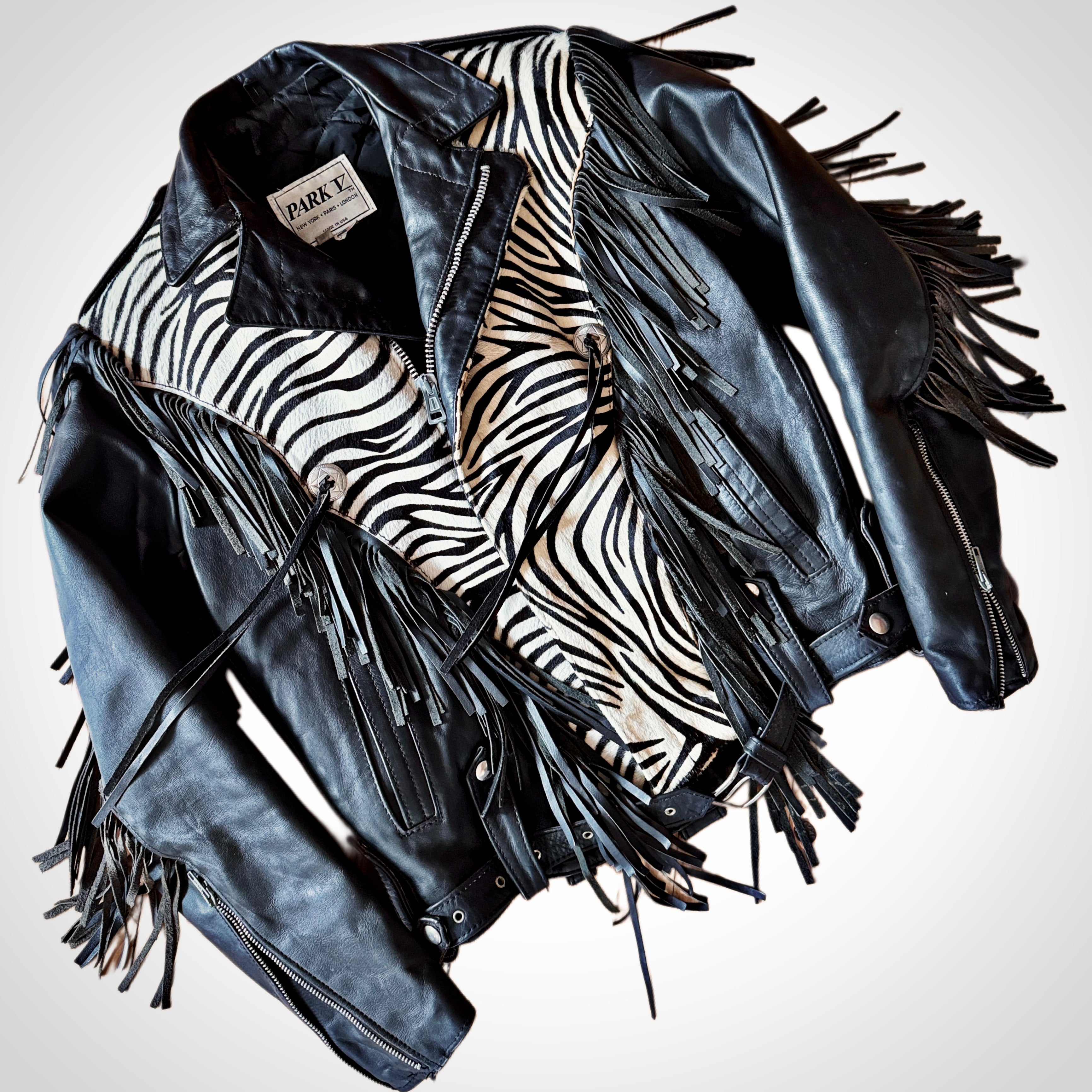 PARK V Vintage Fringe Zebra Leather Motorcycle Jacket
